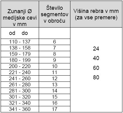 *Vrijedi za uobičajene materijale cijevi i medija. Za točne informacije u vezi materijala i medija kontaktirajte nas.