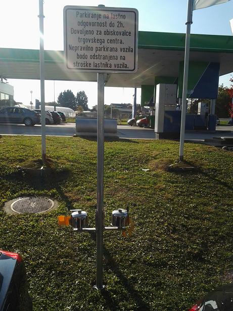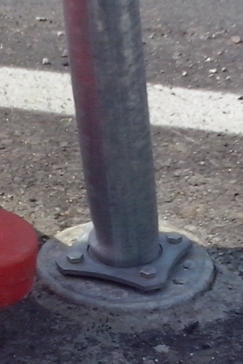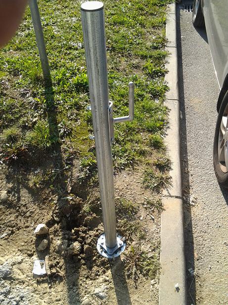 Primjer oštećenog stupa, zbog prometne nesreće. Zbog korištenja eko sidra, stup je lako zamijeniti. Brzo, bez kopanja i bez betoniranja.